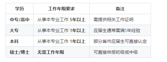 3. 本科畢業或學士學位:從事專業技術工作滿1年